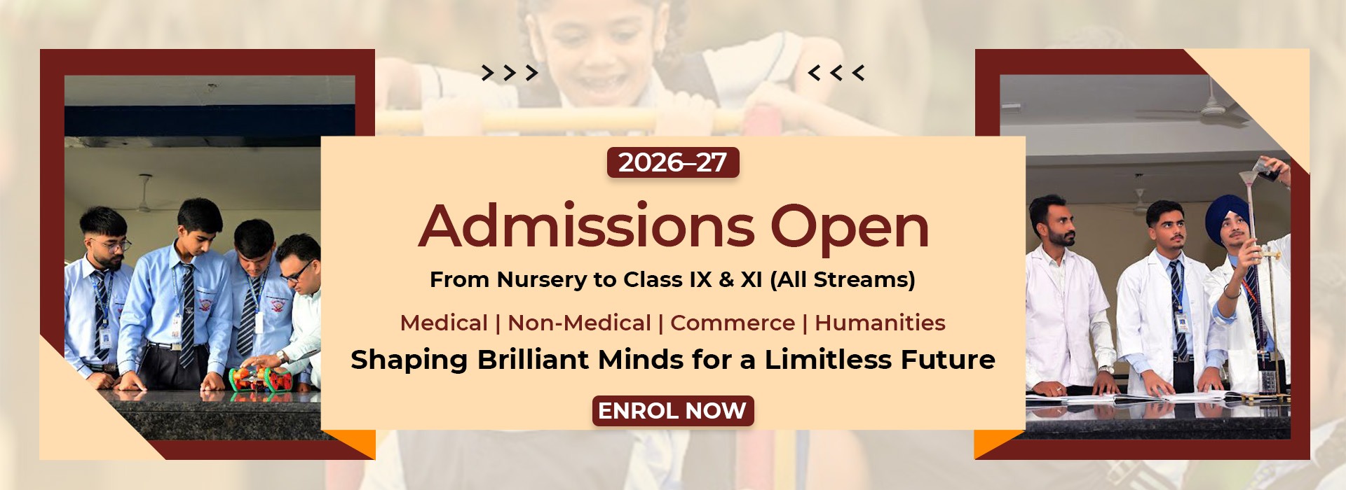 The school is located in a huge campus spread over 10 acres of land in the lap of nature situated in village Parowal barely 5 minutes away from Garhshankar.