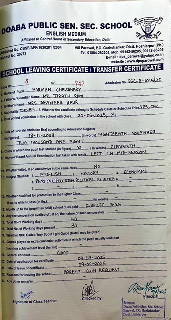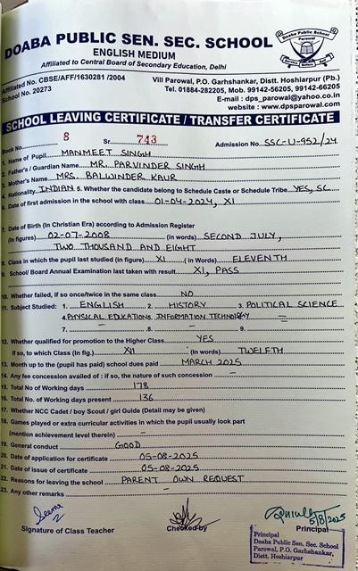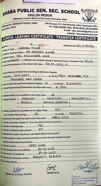 Sardar Balwant Singh Memorial Scholarship