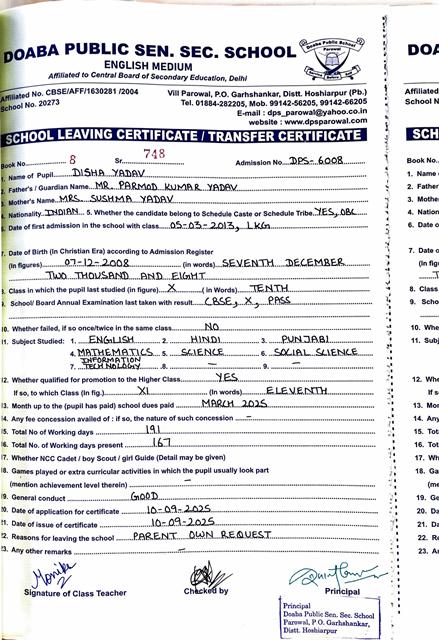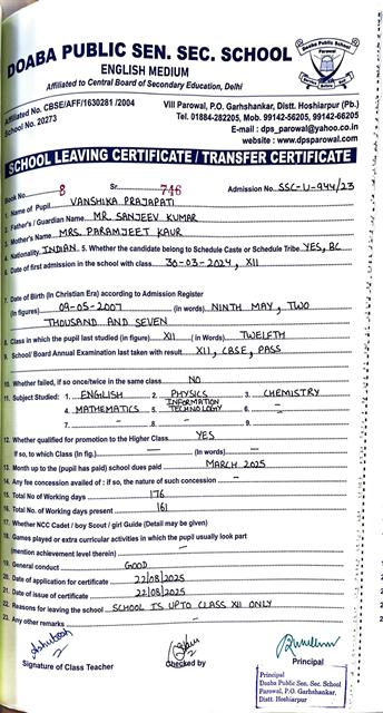 Admission Procedure (Class XI)